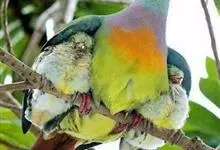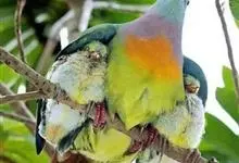 橙胸绿鸠体长24-29厘米,体重135-200克。是中等体型的绿鸠。黑色的翼上具醒目的黄色纵纹和翼缘。脸前部绿色,颈背及上背灰色。雄鸟下体黄绿,上胸淡紫,下胸橘黄;雌鸟胸部绿色。尾灰色,…全部>>