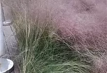粉黛乱子草:是禾本目、禾本科、乱子草属植物。多年生暖季型草本,株高可达30-90厘米,宽可达60-90厘米。顶端呈拱形,绿色叶片纤细。顶生云雾状粉色花絮,花期9-11月,…全部>>