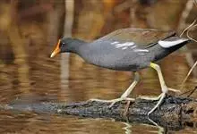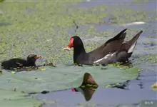 黑水鸡:是鹤形目、秧鸡科的鸟类,共有12个亚种。中型涉禽,体长24-35厘米。嘴长度适中,鼻孔狭长;头具额甲,后缘圆钝;嘴和额甲色彩鲜艳。翅圆形,第2枚初级飞羽最长,或第2枚和第3枚初级飞羽等长,…全部>>