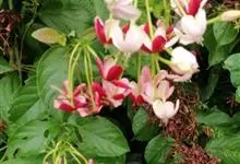 使君子 Jongkind)是使君子科、使君子属攀援灌木,叶对生,椭圆形,两面均被灰白色柔毛。穗状花序,倒挂下垂。花期夏秋。果有五棱,熟时黑色,种子白色。分布于印度、缅甸、菲律宾和中国。喜温润,深根性,…全部>>