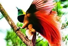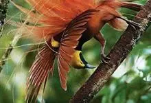 大极乐鸟是极乐鸟属中最大的鸟种。成年雄鸟体长可达到43厘米,雌性可达35厘米。雄鸟的额、颊、喉等墨绿色;头、颈黄色;上体暗赤栗色;腹部葡萄红色,胁部有长饰羽,其基部橙黄,中部黄色,…全部>>