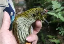 纹背捕蛛鸟:为太阳鸟科捕蛛鸟属的鸟类。是太阳鸟科中体型较大的一种,体重25-45克,体长160-210毫米。嘴粗长而尖且向下弯曲。上体橄榄黄色具黑色中央斑纹。下体淡黄白色满布黑色纵纹,尾具黑色次端斑。…全部>>