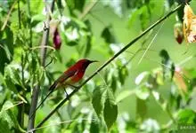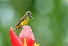 黄腰太阳鸟共有16个亚种,小型鸟类,体长10-15厘米。嘴细长而向下弯曲,雄鸟额和头顶前部金属绿色,头顶后部橄榄褐色。其余头、颈、背、肩、颏、喉、胸以及翅上中覆羽和小覆羽概为红色,腰黄色,…全部>>