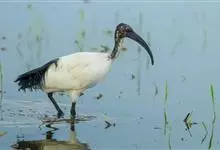 圣鹮头、颈黑色,身体白色,初级和次级飞羽尖端黑色。喙长且厚、黑色下弯,跗蹠与趾黑色。下背部有大量黑色纱状装饰羽,翼下裸露皮肤红色,体侧有时带黄褐色。亚成鸟的头、颈有羽毛,斑驳黑色带有白色纵纹,…全部>>