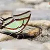 大二尾蛱蝶两翅正面黑色,中域有一浅绿色大型宽带纹,两翅反面浅绿色,中域有一缀黑边的褐色弧纹,亚外缘还有一深褐色横纹,后翅各有尾突两条,…全部>>