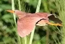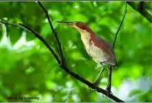 紫背苇鳽是鹭科、苇鳽属动物,为涉禽,体长约33厘米。头顶黑色,后头至尾上覆羽暗栗褐色;翅上覆羽橄榄黄色;下体浅棕黄色。多生活于水库和山脚边的稻田、芦苇丛、滩涂及沼泽草地,在西藏见于海拔2300米的农田,…全部>>