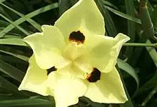 双色野鸢尾为多年生草本植物,叶子呈剑状淡绿色。…