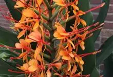 黄姜花:姜科,姜花属多年生草本草本芳香花卉,秋冬季开花,穗状花序,长圆形;苞片长椭圆形,覆瓦状排列,每一苞片内有花3-5朵;花深黄色,形似蝴蝶,气味芬芳纯正,沁人心脾;唇瓣倒心形,黄色,…全部>>