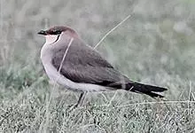 燕鸻pratincole,亦作swallow plover。燕鸻科燕鸻亚科6~7种旧大陆海滨鸟类。体长约20公分,体褐色,腰白色;叉尾,翅长而尖。晨昏飞行在河流、湖泊上空捕食昆虫。…全部>>