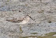 斑胸滨鹬小中型涉禽;体长23厘米,翼展37-45厘米,体重126克。嘴形直,有时微向上或向下弯曲;鼻沟长度远超过上嘴的1/2;羽色暗淡,雌雄羽色及大小大都相同;跗蹠后侧具盾状鳞,…全部>>