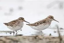 阔嘴鹬是涉禽,体长17厘米。特征为翼角常具明显的黑色块斑并具双眉纹。与黑腹滨鹬平滑下弯的嘴相比,阔嘴鹬的嘴具微小纽结,使其看似破裂。上体具灰褐色纵纹;下体白,胸具细纹;腰及尾的中心部位黑而两侧白。…全部>>
