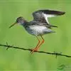 红脚鹬:体长28厘米,上体褐灰,下体白色,胸具褐色纵纹。飞行时腰部白色明显,次级飞羽具明显白色外缘。尾上具黑白色细斑。虹膜黑褐色,嘴长直而尖,基部橙红色,尖端黑褐色。脚较细长,亮橙红色,…全部>>