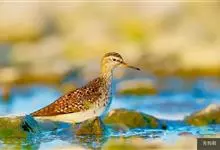 泽鹬:小型涉禽,体长19-26厘米。嘴长,相当纤细,直而尖。颜色为黑色,基部绿灰色,脚细长,暗灰绿色或黄绿色。夏季上体灰褐色具黑色斑,腰白色并向下呈楔形延伸。下体白色,颈、胸具细的黑色纵纹。…全部>>