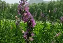 千屈菜是千屈菜科千屈菜属的多年生草本植物;根茎粗壮;叶披针形或宽披针形,无柄;花序簇生,呈聚伞状,花梗及花序梗甚短,花枝似一大型穗状花序,红紫色或淡紫色,苞片宽披针形或三角状卵形;果实为蒴果,扁圆形。…全部>>