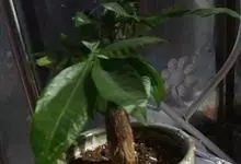 瓜栗 Walp. ),俗称发财树,木棉科小乔木,高4-5米,树冠较松散,幼枝栗褐色,无毛。小叶具短柄或近无柄。花单生枝顶叶腋;花梗粗壮,被黄色星状茸毛,脱落;萼杯状,近革质;花瓣淡黄绿色,狭披针形…全部>>