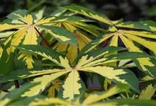 花叶木薯(斑叶木薯)金虎尾目 > 大戟科 > 木薯属 > 花叶木薯