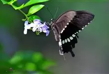玉带凤蝶是鳞翅目凤蝶科凤蝶属昆虫,又称白带凤蝶、黑凤蝶、缟凤蝶、梁山伯凤蝶。雄蝶前翅外缘、后翅中央有7个大型黄白斑,排列成带。老熟幼虫深绿色,头部黄褐色,后胸前缘有1条齿状的黑色线状横纹,…全部>>