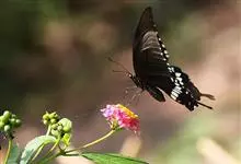 玉斑凤蝶Papilio helenus 别名白纹凤蝶,是凤蝶科凤蝶属美凤蝶亚属大型种类。雌雄同型;体翅皆黑色,后翅正面中室外有3个并列的白色斑,亚外缘有1列模糊的新月形红色斑,…全部>>
