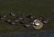 翻石鹬:体重82-135克,体长180-240毫米。体型高矮兼称,看起来十分的滑稽。它们在繁殖季时体色非常醒目,由栗色、白色和黑色交杂而成,嘴短,黑色,脚橙红色。到了冬天,翻石鹬身上的栗红色就会消失,…全部>>