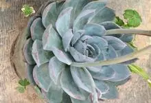 蓝石莲是景天科、拟石莲花属的多肉植物。茎部粗壮,成熟植株茎部木质化。叶片莲座型密集排列,株径不会很大,叶片相对较薄,常年绿色,表面布有白色粉末,中部凹陷,呈倒水滴状。叶尖较尖,叶缘光滑无褶皱,…全部>>