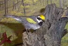 三趾啄木鸟,是啄木鸟科、啄木鸟属的小型鸟类,体长20-23厘米,雄鸟头顶金黄色,雌鸟黑色而具白色斑点。眼至耳覆羽黑色,眼后有一条白色纵纹,颊纹白色,颚纹黑色,甚为醒目。枕和后颈黑色,…全部>>