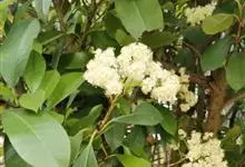 石楠 Kalkman),是蔷薇科石楠属的常绿乔木,高5~12米,株型紧凑,树冠圆球形。树枝为褐灰色;鳞片为褐色,没有毛;叶片革质,长椭圆至侧卵状椭圆形,有锯齿,新叶红色光亮。复伞房花序,白色小花,…全部>>