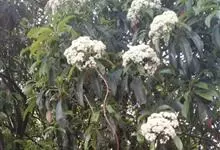 石楠 Kalkman),是蔷薇科石楠属的常绿乔木,高5~12米,株型紧凑,树冠圆球形。树枝为褐灰色;鳞片为褐色,没有毛;叶片革质,长椭圆至侧卵状椭圆形,有锯齿,新叶红色光亮。复伞房花序,白色小花,…全部>>