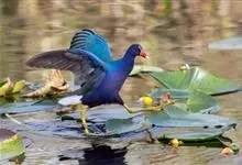 紫水鸡是秧鸡科紫水鸡属鸟类。下辖12个亚种,中国为云南亚种。体长40-45厘米,体羽大多为紫蓝色,翅表面和胸蓝绿色;尾下覆羽白色;嘴红色,粗大并与橙红色额甲相接;额甲宽阔,后缘呈截平状;雌雄鸟相似,…全部>>