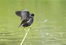 黑水鸡:是鹤形目、秧鸡科的鸟类,共有12个亚种。中型涉禽,体长24-35厘米。嘴长度适中,鼻孔狭长;头具额甲,后缘圆钝;嘴和额甲色彩鲜艳。翅圆形,第2枚初级飞羽最长,或第2枚和第3枚初级飞羽等长,…全部>>