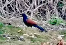褐翅鸦鹃,是鹃形目鸦鹃科鸦鹃属的鸟类。褐翅鸦鹃的身体为黑色;头颈和胸带蓝紫色金属光泽并具黑亮的羽干纹,下胸至腹部泛金属绿光泽;两翼和肩部为棕栗色,外侧飞羽具暗色羽端,尾羽闪铜绿色光泽;虹膜赤红色,…全部>>