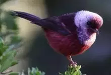 酒红朱雀小型鸟类,体长13~15厘米。雄鸟通体深红色,头部深朱红或棕红色,下背和腰玫瑰红色,眉纹粉红色而具丝绢光泽。两翅和尾黑褐或灰褐色、具暗红色狭缘,内侧两枚三级飞羽具淡粉红色先端。…全部>>