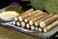 薯蓣是缠绕草质藤本。块茎为长圆柱形,垂直生长,长可达1米多,断面干时白色。茎通常带紫红色,右旋,无毛。单叶,在茎下部的互生,顶端渐尖,基部深心形、宽心形或近截形,边缘常3浅裂至3深裂。叶腋内常有珠芽。…全部>>