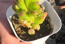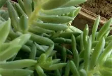 筒叶花月,是景天科青锁龙属的多年生草本植物。植株多分株,灌木状,茎较粗壮,圆柱形,表皮灰褐色;叶片肉质,互生,呈圆筒状,簇生于茎或分枝顶端,叶端呈斜截形,截面为椭圆形;花呈星状,淡白色;花期秋季。…全部>>
