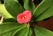铁海棠为大戟科大戟属蔓生灌木植物;茎多分枝,具纵棱,呈旋转状;叶互生,通常集中于嫩枝上;每个花序基部边缘具微小的红色尖头;苞叶先端圆且具小尖头,无柄,上面鲜红色,下面淡红色;苞片丝状;子房光滑无毛,…全部>>