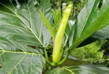 面包树 Fosberg)是桑科波罗蜜属植物。叶大,成熟之叶羽状分裂,表面深绿色,背面浅绿色;穗状花序单生叶腋,雄花序长圆筒形至长椭圆形或棒状;聚花果倒卵圆形或近球形;花期为3~5月,果期为7~10月。…全部>>