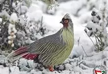 血雉雉科血雉属鸟类,别名血鸡、松花鸡,血雉的雄鸟大覆羽、尾下覆羽、尾上覆羽、脚、头侧、腊膜为红色,故称血雉。其别名甚多,各地皆异。在甘肃,因其胸侧和翅上覆羽沾绿,被称为“绿鸡”;因其羽毛形似柳叶,…全部>>