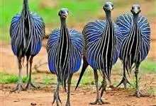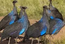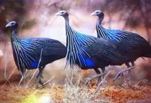 鹫珠鸡:是珠鸡科中体形最大的一种,因头颈部像兀鹫而得名。雌雄羽色相似,为黑色基底上遍布白色点斑,如同珍珠。以各种植物的种子和小型动物为食。走禽。体结实,喙短,呈圆锥形,适于啄食植物种子;脚强健,具锐爪,…全部>>