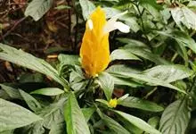 金苞花是爵床科、金苞花属的常绿草本植物。叶长圆形或披针形,先端渐尖,基部通常楔形,下面主脉被微柔毛;顶生穗状花序由密、短的总花梗组成,卵形苞片膜质,下部的近心形,小苞片披针形或匙形,与花萼等长,…全部>>