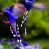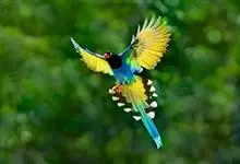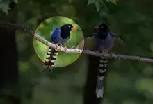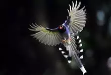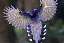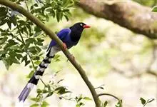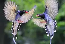 台湾蓝鹊:体长64至65厘米,翼展18至21厘米,尾长约40厘米,尾羽长占了总体长的三分之二。头、脸、颈、喉、胸都是黑色,黄色的眼珠包围黑色的瞳孔,鲜红色的鸟喙、双脚,…全部>>