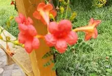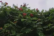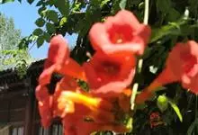凌霄 Schum.),别名上树龙、五爪龙、九龙下海等,为紫葳科凌霄属的攀援藤本植物。其茎木质,以气生根攀附于它物之上。叶对生,为奇数羽状复叶;小叶卵形至卵状披针形,边缘有粗锯齿;顶生疏散的短圆锥花序,…全部>>