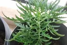 伽蓝菜是景天科伽蓝菜属植物。多年生草本,高20-100厘米。叶对生,中部叶羽状深裂,全长8-15厘米,裂片线形或线状披针形。聚伞花序排列圆锥状,长10-30厘米;苞片线形。花期3月。…全部>>