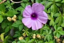五爪金龙 Sweet),旋花科番薯属多年生缠绕草本植物。茎细长,有细棱;叶片为掌状;花冠紫红色、紫色或淡红色、偶有白色,漏斗状;蒴果近球形。花期5~12月。五爪金龙的叶子类似掌状,有5至7个裂痕,…全部>>