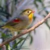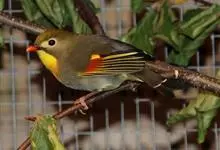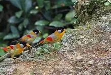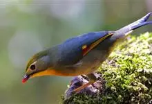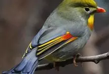 银耳相思鸟小型鸟类,体长14~18厘米。头顶黑色,耳羽银灰色,前额橙黄色;外侧飞羽橙黄色,基部朱红色,极为鲜艳、醒目。尾圆形,尾上、尾下覆羽朱红色,尾暗灰褐色,外侧尾羽橙黄色,其余上体橄榄绿或橄榄黄色。…全部>>
