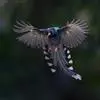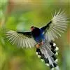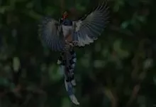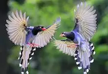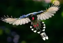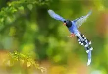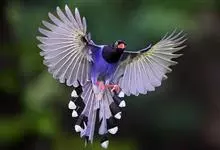 台湾蓝鹊:体长64至65厘米,翼展18至21厘米,尾长约40厘米,尾羽长占了总体长的三分之二。头、脸、颈、喉、胸都是黑色,黄色的眼珠包围黑色的瞳孔,鲜红色的鸟喙、双脚,…全部>>