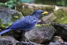 紫啸鸫是雀形目鹟科啸鸫属鸟类,又称黑雀儿,山鸣鸡、乌精。成鸟眼先及颏绒黑色;前额、头顶至背及肩羽和颈侧呈深紫蓝色,羽端具较密集的亮蓝色点斑;腰至尾上覆羽的深紫蓝色较暗而杂黑褐色,…全部>>