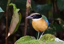栗头八色鸫又叫锅巴雀,体长为24-26厘米,体重100-135克,是雀形目八色鸫科的鸟类。体型圆胖,尾短,腿长,常在森林底层或低植被中找食无脊椎动物。叫声简单哀婉。…全部>>