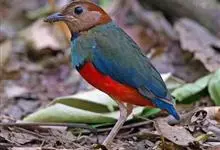 栗头八色鸫又叫锅巴雀,体长为24-26厘米,体重100-135克,是雀形目八色鸫科的鸟类。体型圆胖,尾短,腿长,常在森林底层或低植被中找食无脊椎动物。叫声简单哀婉。…全部>>