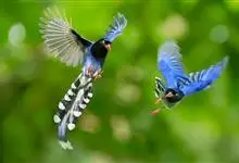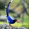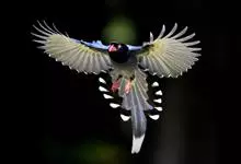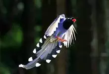 台湾蓝鹊:体长64至65厘米,翼展18至21厘米,尾长约40厘米,尾羽长占了总体长的三分之二。头、脸、颈、喉、胸都是黑色,黄色的眼珠包围黑色的瞳孔,鲜红色的鸟喙、双脚,…全部>>