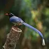 台湾蓝鹊:体长64至65厘米,翼展18至21厘米,尾长约40厘米,尾羽长占了总体长的三分之二。头、脸、颈、喉、胸都是黑色,黄色的眼珠包围黑色的瞳孔,鲜红色的鸟喙、双脚,…全部>>