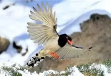 红嘴蓝鹊,别名山鹊、长尾鹊,是鸦科蓝鹊属的一种观赏性较强的大型鸣禽。该物种为体长54~65cm,头、颈、喉和胸黑色,头顶至后颈有一块白色至淡蓝白色或紫灰色块斑,其余上体紫蓝灰色或淡蓝灰褐色。尾长呈凸状,…全部>>